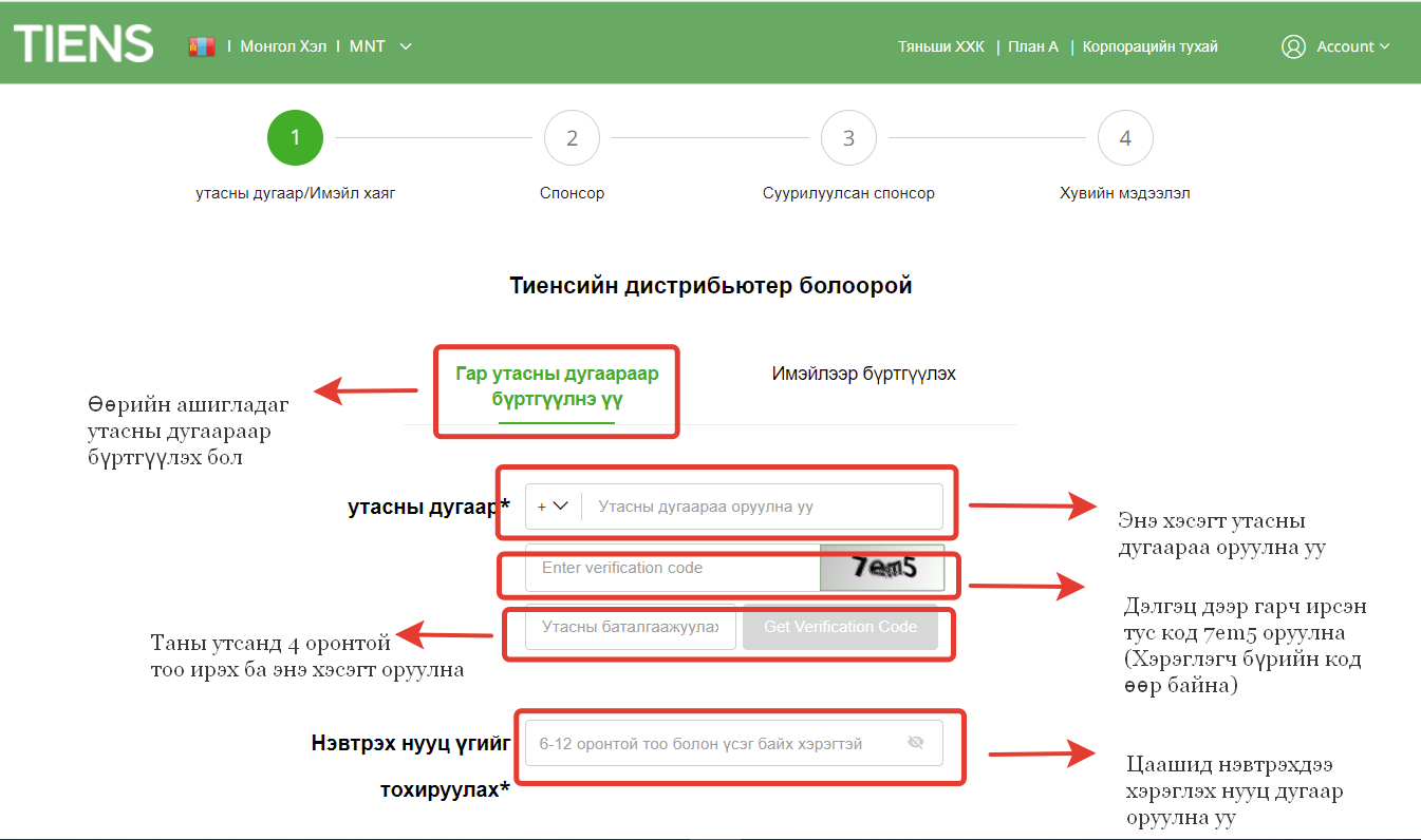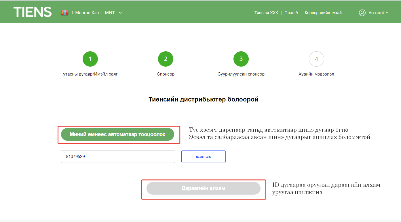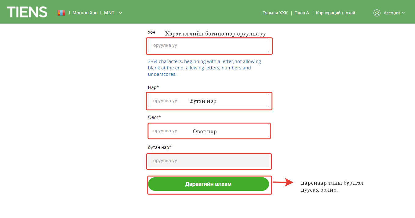 Зааврын дагуу мэдээллээ оруулан дараачийн алхмыг дарснаар таны бүртгэл амжилттай бүртгэгдэж дуусах болно.